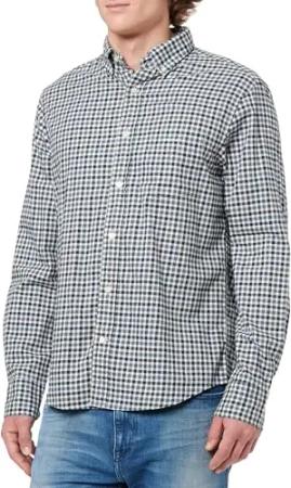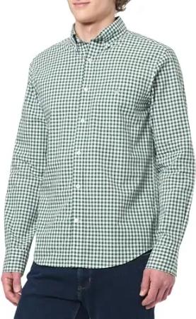 Herren REG Cotton Linen Check Shirt Hemd, Woody Green, XXL