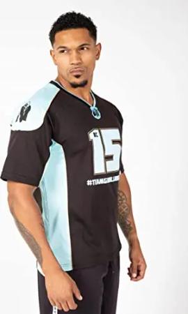 Trenton Football Jersey – V-Ausschnitt Football Bodybuilding Jersey Polyester (DE/NL/SE/PL, Alphanumerisch, L, Regular, Regular, Schwarz/Gold)