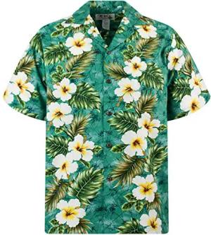 Funky Hawaii-Hemd, Herren, Kurzarm, Cherry-Parrot, Grün, XS