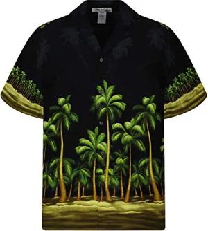 KY‘s Original Hawaiihemd, Grüner Palmenwald, schwarz, M