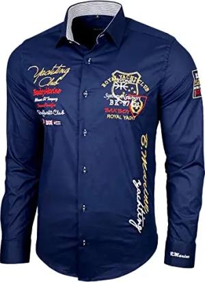 Herren-Hemd Slim-Fit Bügelleicht Für Anzug, Business, Hochzeit, Freizeit - Langarm Hemden für Männer Langarmhemd R-44, Farbe:Marine, Größe:5XL