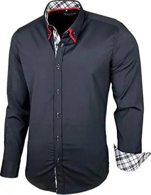 Herren-Hemd Slim-Fit Bügelleicht Für Anzug, Business, Hochzeit, Freizeit - Langarm Hemden für Männer Langarmhemd R-44, Farbe:Schwarz/Rot, Größe:5XL