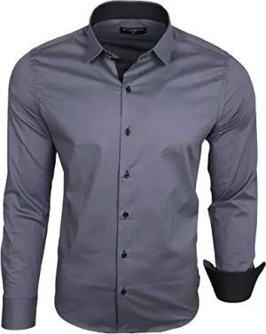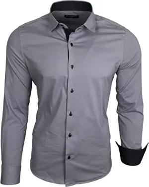 Herren-Hemd Slim-Fit Bügelleicht Für Anzug, Business, Hochzeit, Freizeit - Langarm Hemden für Männer Langarmhemd R-44, Farbe:Grau, Größe:3XL