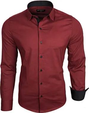 Herren-Hemd Langarm/Business Freizeit Hochzeit/Bügelleicht/Slim-Fit/Anzug Kentkragen Hemd B-500, Farbe:Bordo, Größen:XL