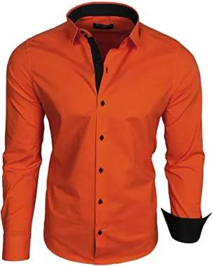 Herren-Hemd Langarm/Business Freizeit Hochzeit/Bügelleicht/Slim-Fit/Anzug Kentkragen Hemd B-500, Farbe:Dunkel Orange, Größen:XL