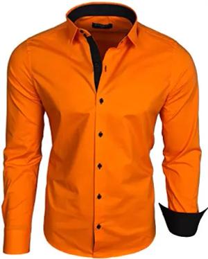 Herren-Hemd Langarm/Business Freizeit Hochzeit/Bügelleicht/Slim-Fit/Anzug Kentkragen Hemd B-500, Farbe:Orange_1, Größen:XL