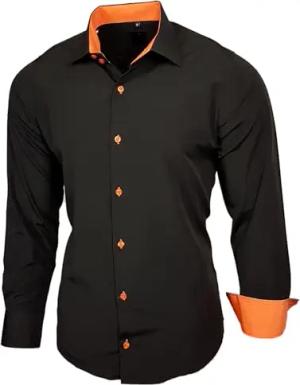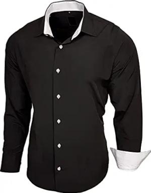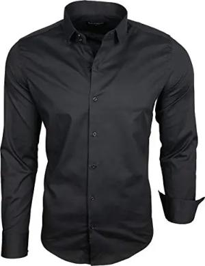 Herren-Hemd Slim-Fit Bügelleicht Für Anzug, Business, Hochzeit, Freizeit - Langarm Hemden für Männer Langarmhemd R-44, Farbe:Schwarz/Weiß, Größe:XL