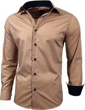 Herren-Hemd Slim-Fit Bügelleicht Für Anzug, Business, Hochzeit, Freizeit - Langarm Hemden für Männer Langarmhemd R-44, Farbe:Khaki, Größe:5XL