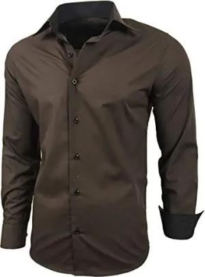 Herren-Hemd Slim-Fit Bügelleicht Für Anzug, Business, Hochzeit, Freizeit - Langarm Hemden für Männer Langarmhemd R-44, Farbe:Braun, Größe:5XL