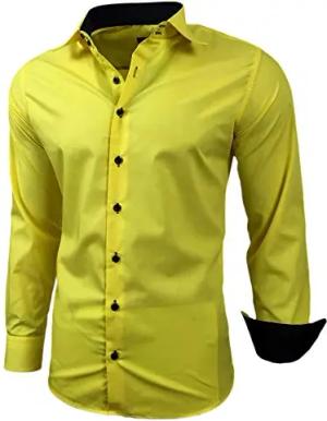 Herren-Hemd Slim-Fit Bügelleicht Für Anzug, Business, Hochzeit, Freizeit - Langarm Hemden für Männer Langarmhemd R-44, Farbe:Gelb, Größe:3XL