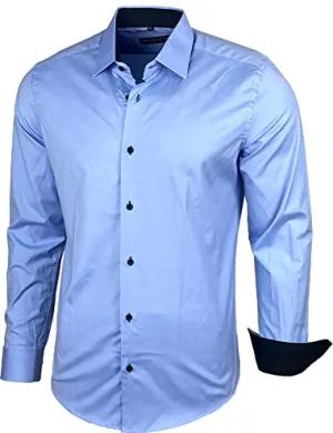 Herren-Hemd Slim-Fit Bügelleicht Für Anzug, Business, Hochzeit, Freizeit - Langarm Hemden für Männer Langarmhemd R-44, Farbe:Hellblau, Größe:S