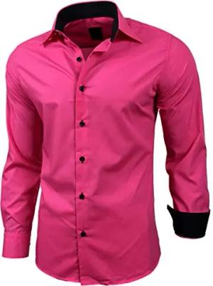 Herren-Hemd Slim-Fit Bügelleicht Für Anzug, Business, Hochzeit, Freizeit - Langarm Hemden für Männer Langarmhemd R-44, Farbe:Pink, Größe:XL