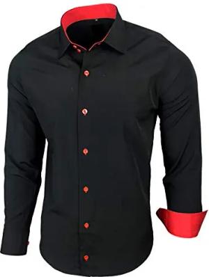 Herren-Hemd Slim-Fit Bügelleicht Für Anzug, Business, Hochzeit, Freizeit - Langarm Hemden für Männer Langarmhemd R-44, Farbe:Schwarz/Rot, Größe:L