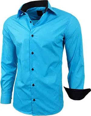 Herren-Hemd Slim-Fit Bügelleicht Für Anzug, Business, Hochzeit, Freizeit - Langarm Hemden für Männer Langarmhemd R-44, Farbe:Türkis, Größe:5XL