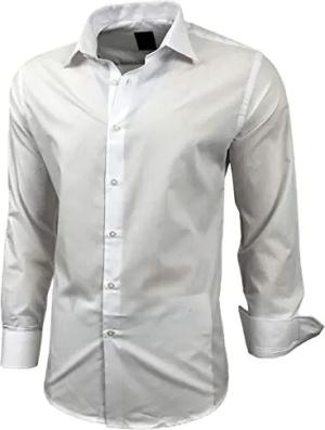 Herren-Hemd Slim-Fit Bügelleicht Für Anzug, Business, Hochzeit, Freizeit - Langarm Hemden für Männer Langarmhemd R-44, Farbe:Weiß, Größe:5XL