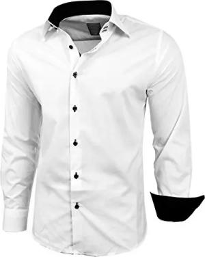 Herren-Hemd Slim-Fit Bügelleicht Für Anzug, Business, Hochzeit, Freizeit - Langarm Hemden für Männer Langarmhemd R-44, Farbe:Weiss/Schwarz, Größe:6XL