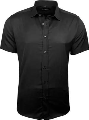 Herren Hemd Slim-Fit Bügelleichte Business Hochzeit Freizeithemd Kurzarm Hemden für Männer Modern B-455 S-4XL, Farbe:Schwarz, Größe:3XL