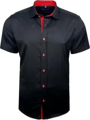 Herren Hemd Slim-Fit Bügelleichte Business Hochzeit Freizeithemd Kurzarm Hemden für Männer Modern B-455 S-4XL, Farbe:Schwarz/Rot, Größe:M