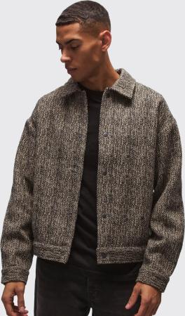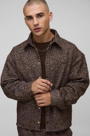 Oversized Brushed Herringbone Overshirt - Chocolate - Xl, Chocolate