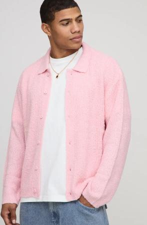 Boxy Fit Brushed Knitted Shirt - Light Pink - M, Light Pink