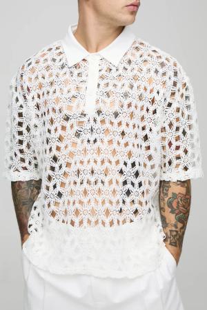 Gehäkeltes Oversize Hemd - White - M, White