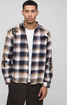 Kariertes Oversize Hemd Mit Kreuz-Applikation - Navy - M, Navy