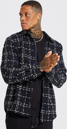 Kariertes Strukturiertes Overshirt - Black - S, Black