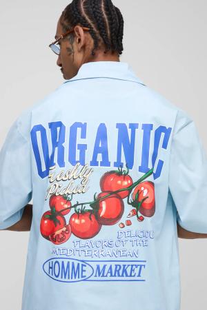 Kastiges Oversize Hemd Mit Pfirsich-Print - Light Blue - M, Light Blue