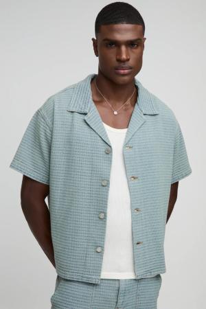 Kurzärmliges Geripptes Oversize Hemd - Black - L, Black