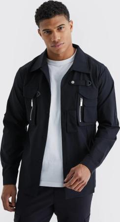 Langärmliges Utility-Hemd Mit 3D-Tasche - Black - S, Black