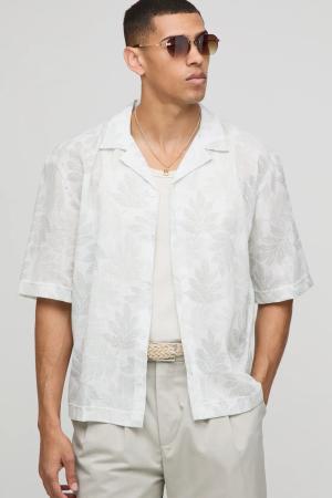 Oversized Boxy Broderie Revere Shirt - White - S, White