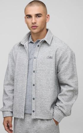 Oversized Brushed Herringbone Overshirt - Light Grey - M, Light Grey