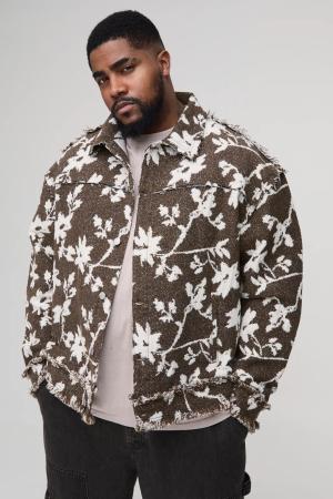 Plus Floral Tapestry Oversized Short Sleeve Overshirt - Chocolate - 3Xl, Chocolate