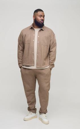Plus Strukturiertes Hemd & Schmale Hose - Taupe - 2Xl, Taupe