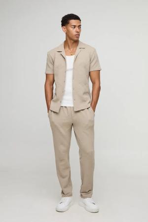 Slim Fit Geo Jacquard Shirt & Tapered Trouser Set - Taupe - L, Taupe