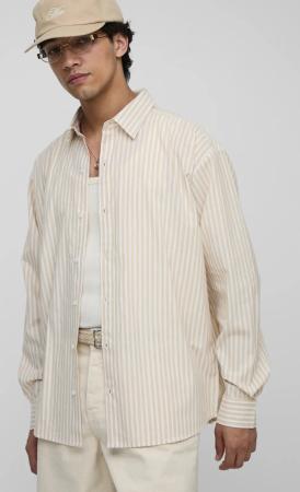 Gestreiftes Oversize Hemd mit langen Ärmeln - Taupe - S, Taupe