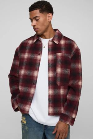 Kariertes Overshirt mit Tasche - Rot - XS, Rot