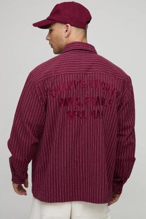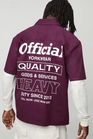 Kurzärmliges Oversize Hemd mit Official Stickerei - Burgund - S, Burgund