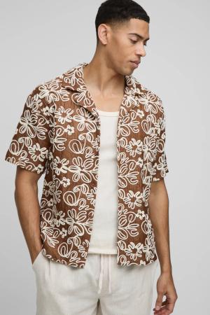 Oversize Organza-Hemd mit Applikation - Braun - M, Braun