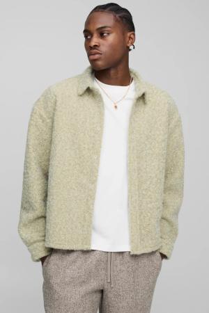 Tall kastiges Bouclee-Overshirt - Grau - S, Grau