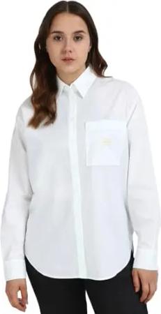 Damen Hemd Woven Label Relaxed Fit, Weiß (Bright White), M