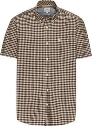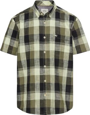 Herren Kariertes Kurzarmhemd aus Reiner Baumwolle Khaki, Menswear-M