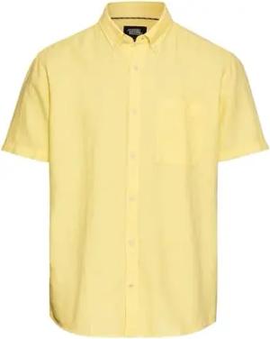 Herren Kurzarmhemd aus einem Baumwoll-Leinenmix Gelb, Menswear-XL