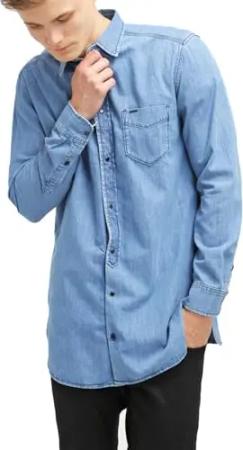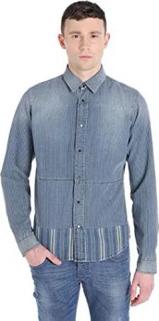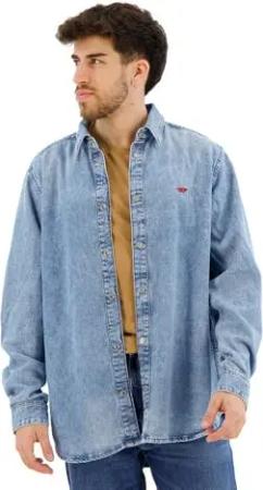 D-Filip Camicia Herren Hemd Denim (L, Blau)
