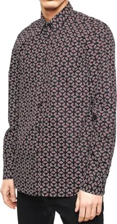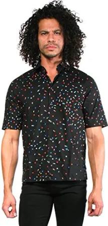 S-Art Printed Camicia Herren Hemd (S, Schwarz)