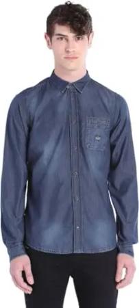 Shrob 0IAEX Herren Hemd Jeanslook Blau (XS, Blau)