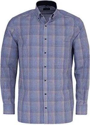 Modern Fit Hemd Langarm Button Down Kragen Karo Navy Größe 38