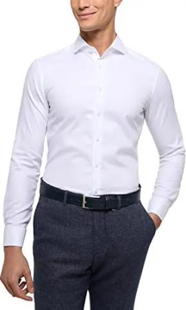 Slim Fit Hemd Langarm Haifischkragen weiß Größe 38