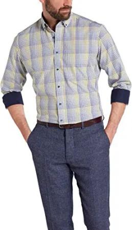 Hemd Comfort Fit Green Level 65 cm Arm blau/grün Karo 2267/42 E114, Kragenweite:45