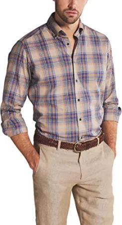 Herren Langarmhemd Comfort Fit | Kariert Braun | 100% Baumwolle | Kentkragen Gr. 44